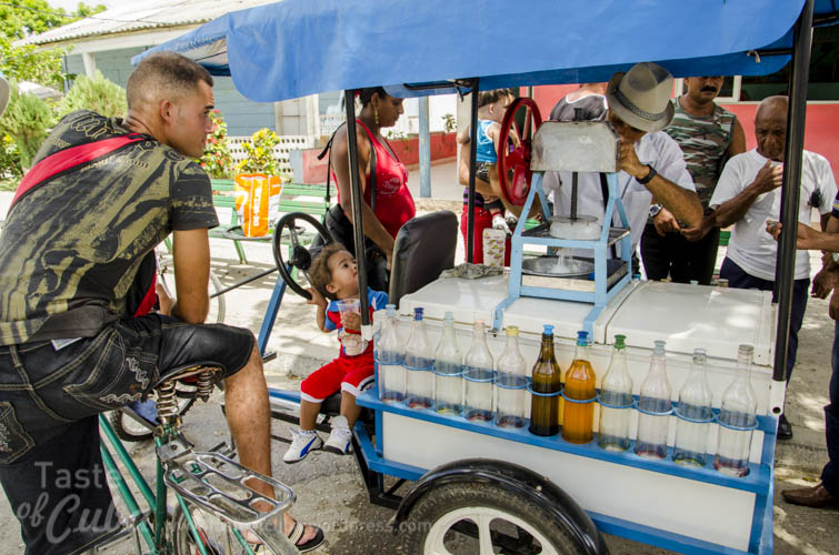 Granizado is a very popular soft drink in Cuba. In a glass add shaved or crushed ice and add a little syrup. It’s very common to see the garnizado vendors throughout the island. Here two styles of granizado at Guantánamo.