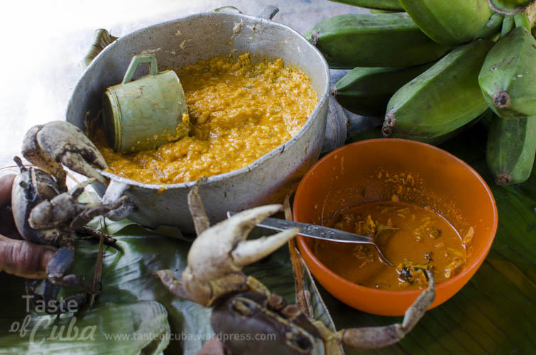 Ingredients for the bacán. Smashed platain with coconut milk and crab in creole sauce / Ingredientes para el bacán. La masa de plátano y leche de coco y el enchilado de cangrejo.