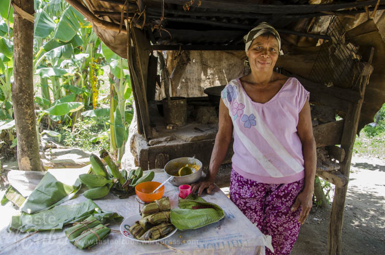 Noelia Palmero Cobas born and actually lives in El Güirito near to Baracoa. She learned with her mom and grandma to cook and make the bacanes. According to her, both, mom and grandma, was famous by the quality of the bacanes their cooked.