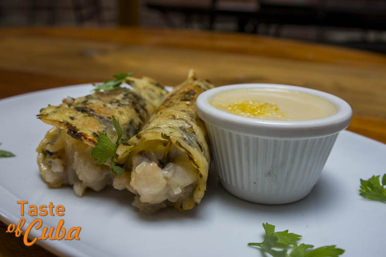 Al servir rellenamos los tacos de queso con la langosta y acompañamos con la crema en una salsera aparte. Mi sugerencia es rociar los tacos con la crema.