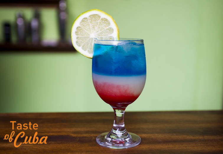 Llenar una copa de 8 onzas con hielo. Agregar ½ onza de granadina, 2 onzas de jugo de naranja, 1 ½ onzas de ron blanco y ½  onzas de Blue Curacao. Se decora con una rueda de naranja.